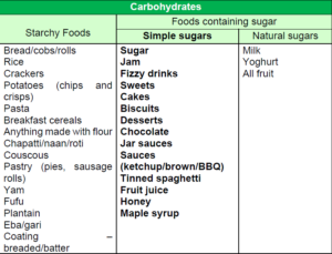 - Minimise these foods first (above in bold) to help control blood glucose.