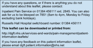 We may advise that a TENS machine will benefit you after doing an initial pain assessment with you. The pain nurse will go through how to use the machine and will also provide you with the manufacturer’s instructions and give you advice on pad placement.
