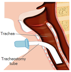 A tracheostomy is a tube that goes into the windpipe (trachea) through the neck – please see Figure 1. It is usually put in by intensive care doctors in the Critical Care Unit or by surgeons in operating theatres.